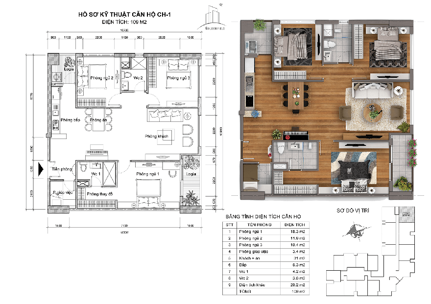 THIẾT KẾ CHI TIẾT CĂN HỘ 3 PHÒNG NGỦ