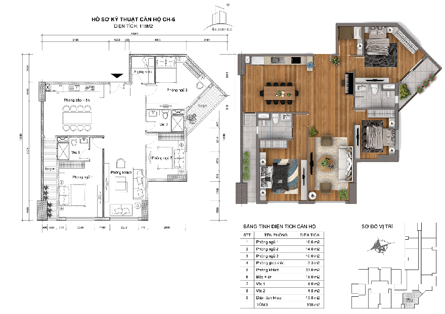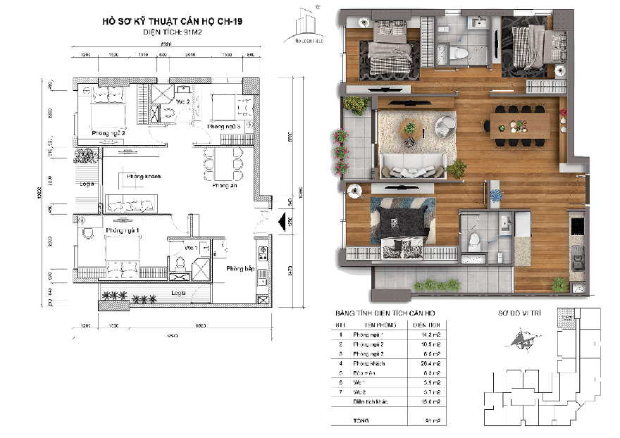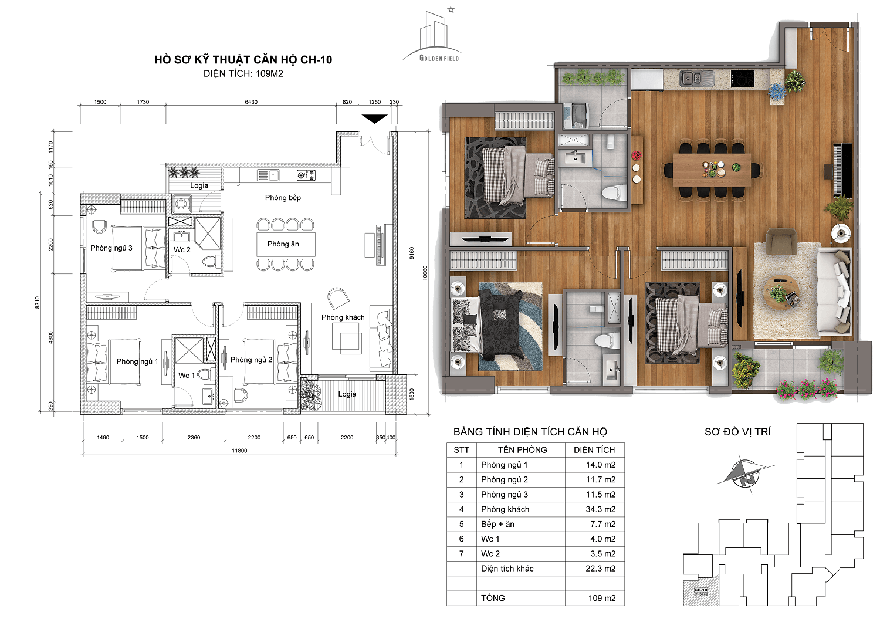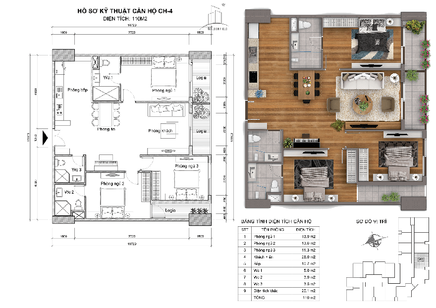 THIẾT KẾ CHI TIẾT CĂN HỘ GOLDEN FIELD MỸ ĐÌNH