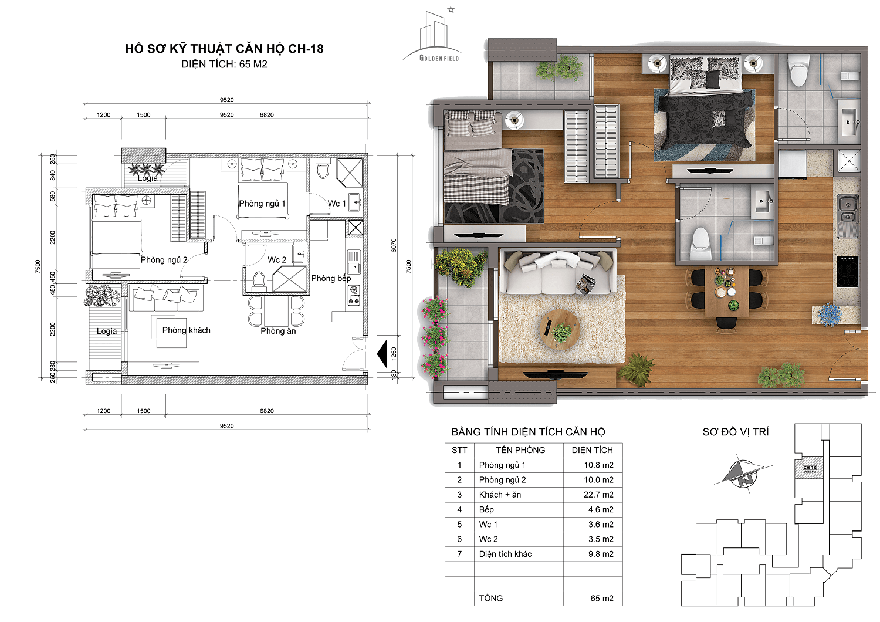 - Diện tích 65m2: CH-16, CH-17, CH-18